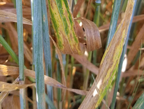 Leaf spotting diseases commonly occur on spring wheat crops grown in Saskatchewan, causing yield losses of up to 15%, although greater losses have been documented during severe epidemics.